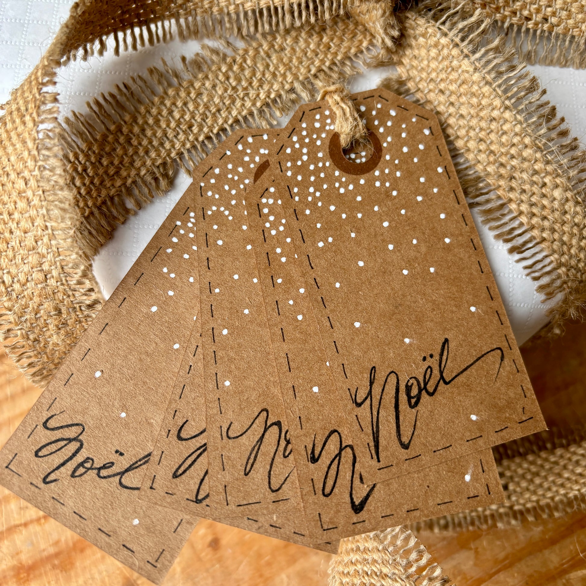 Hand Made Gift Tags pack of 10, Hand drawn Noel gift tags, Kraft card