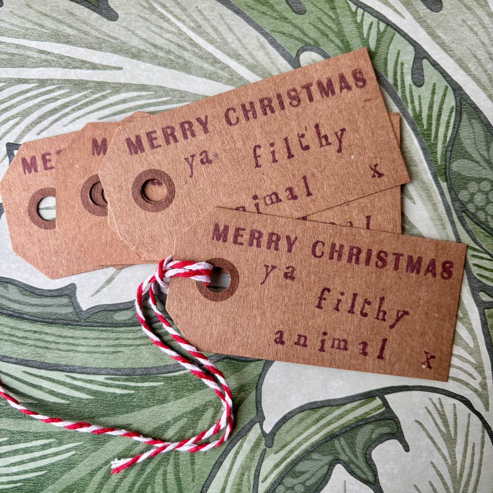 Hand Made Gift Tags pack of 10, Merry Christmas Ya Filthy Animal