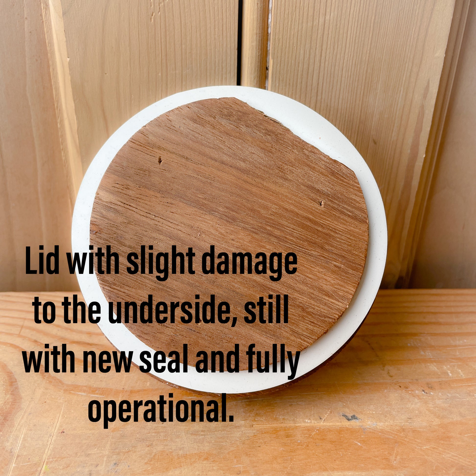 **The lids have been carefully restored to remove flaking and discolouration, and allow the grain to shine through. Due to the age of the canisters and lids some of the lids have damage to the underside, this doesn't affect the use and cannot be seen when the lid is on the jar. We highlight this in the listing and the price takes this into consideration.**