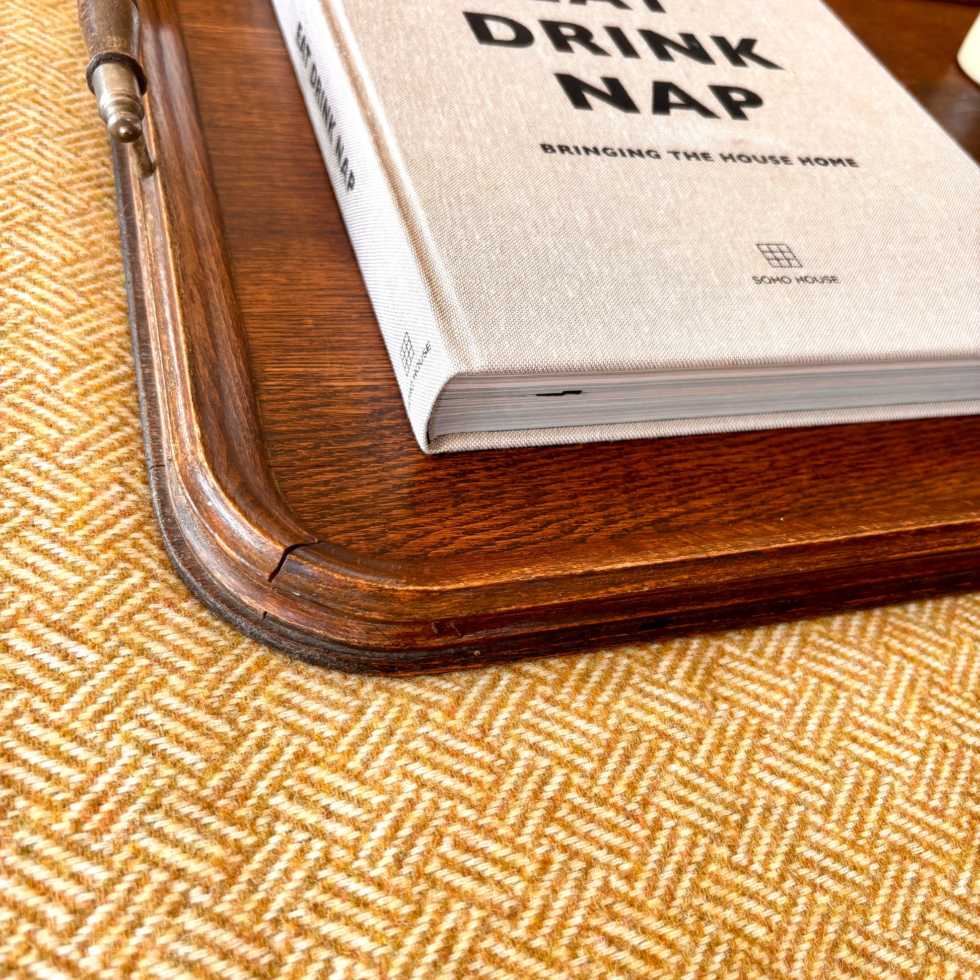This lovely large oak tray dating from approx. 1930s. with a nice raised handles with brass caps to the wooden grips, this tray would grace any living area, bedroom, garden or footstool.