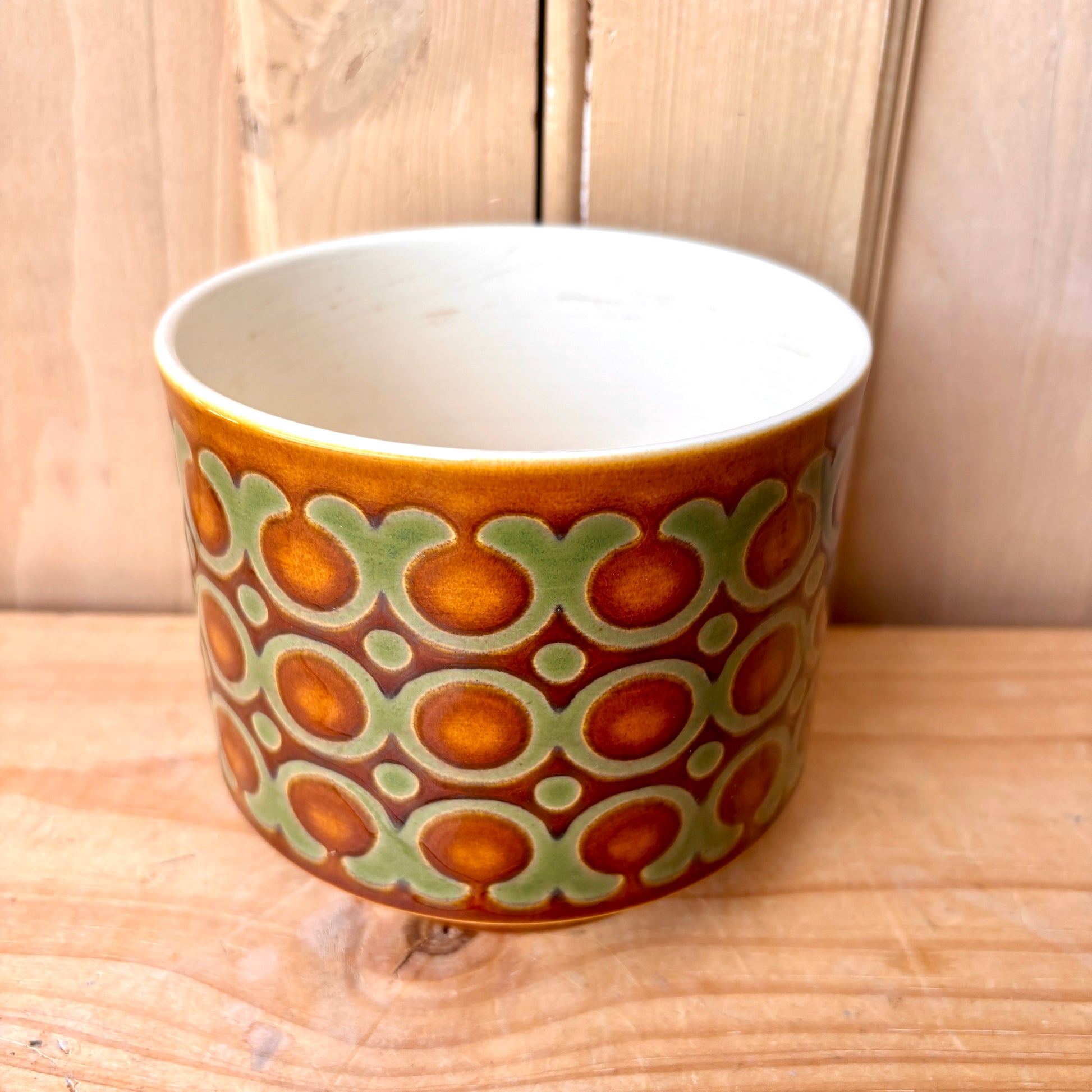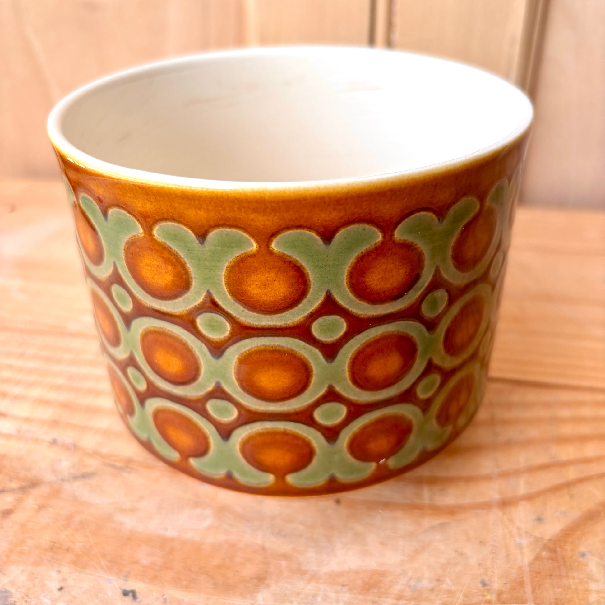 Hornsea pottery are well known for there tableware and canisters, but even more collectable are there other items such as this fantastic Bronte patterned plant pot. Brilliantly made and super stylish.