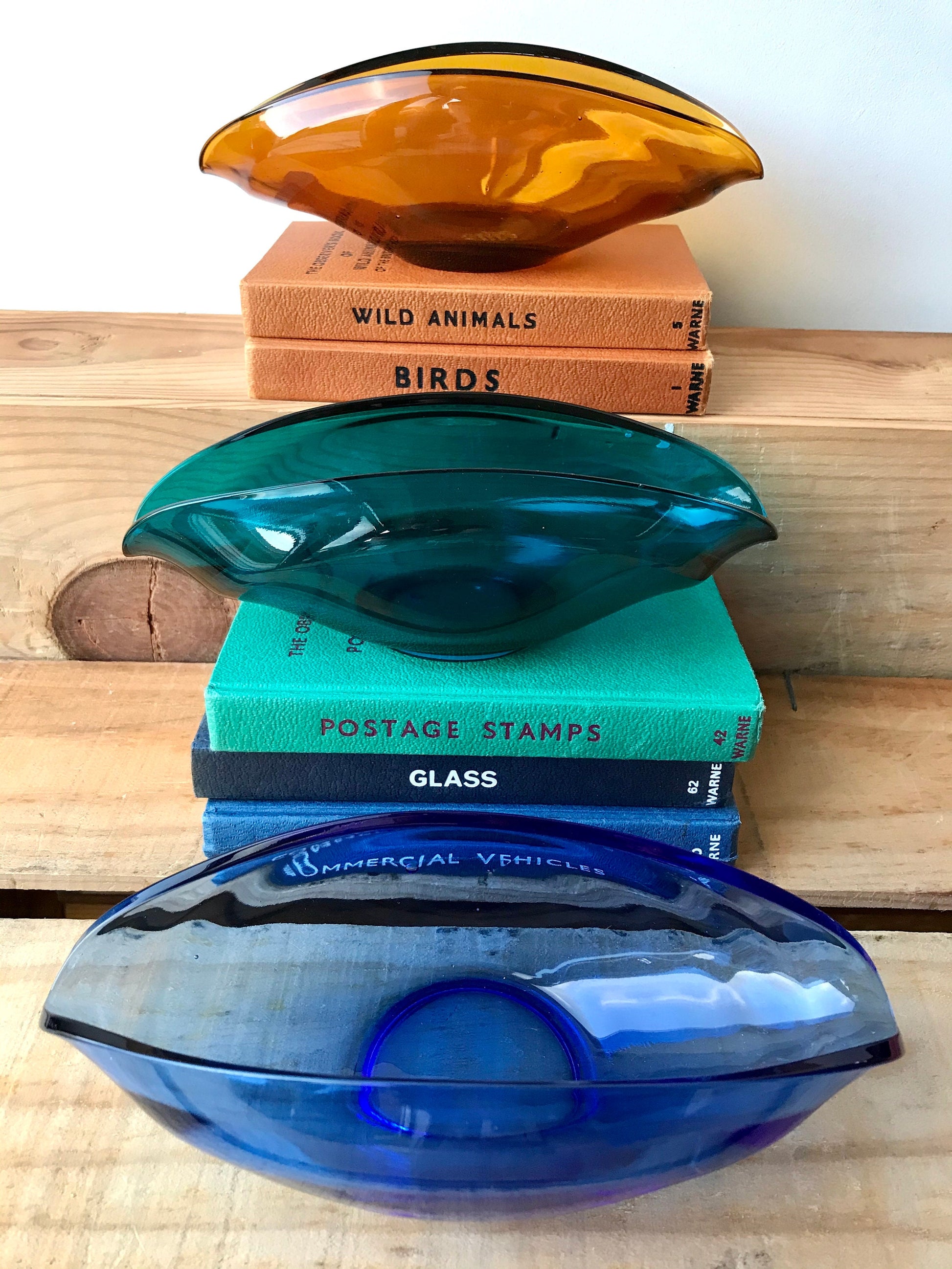 Gorgeous art glass dish made by Sowerby of Tyneside, England in the 1960s/70s.