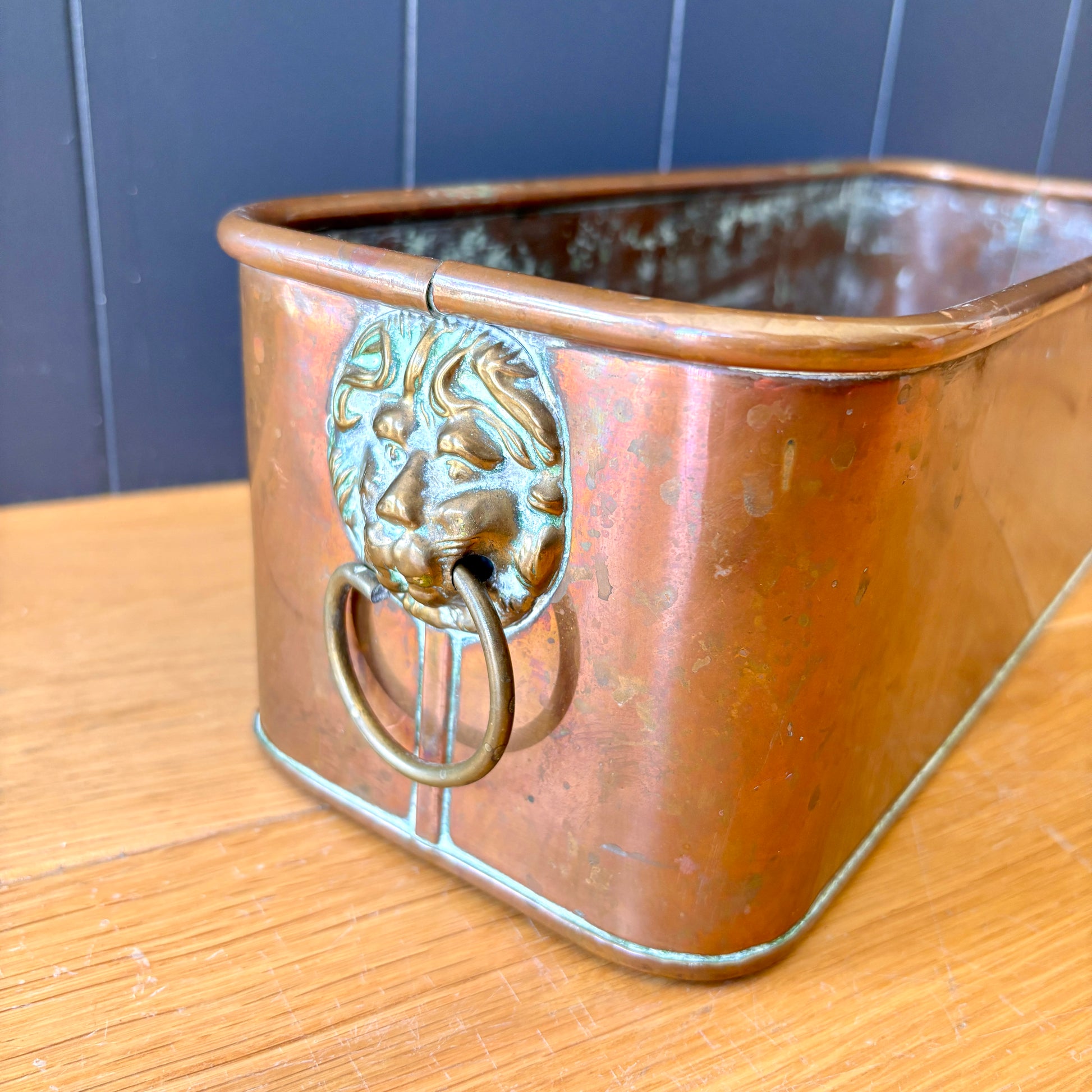The copper has a lovely patina, and this trough. A cut above other copper troughs, with embossed ions head handles on each end.