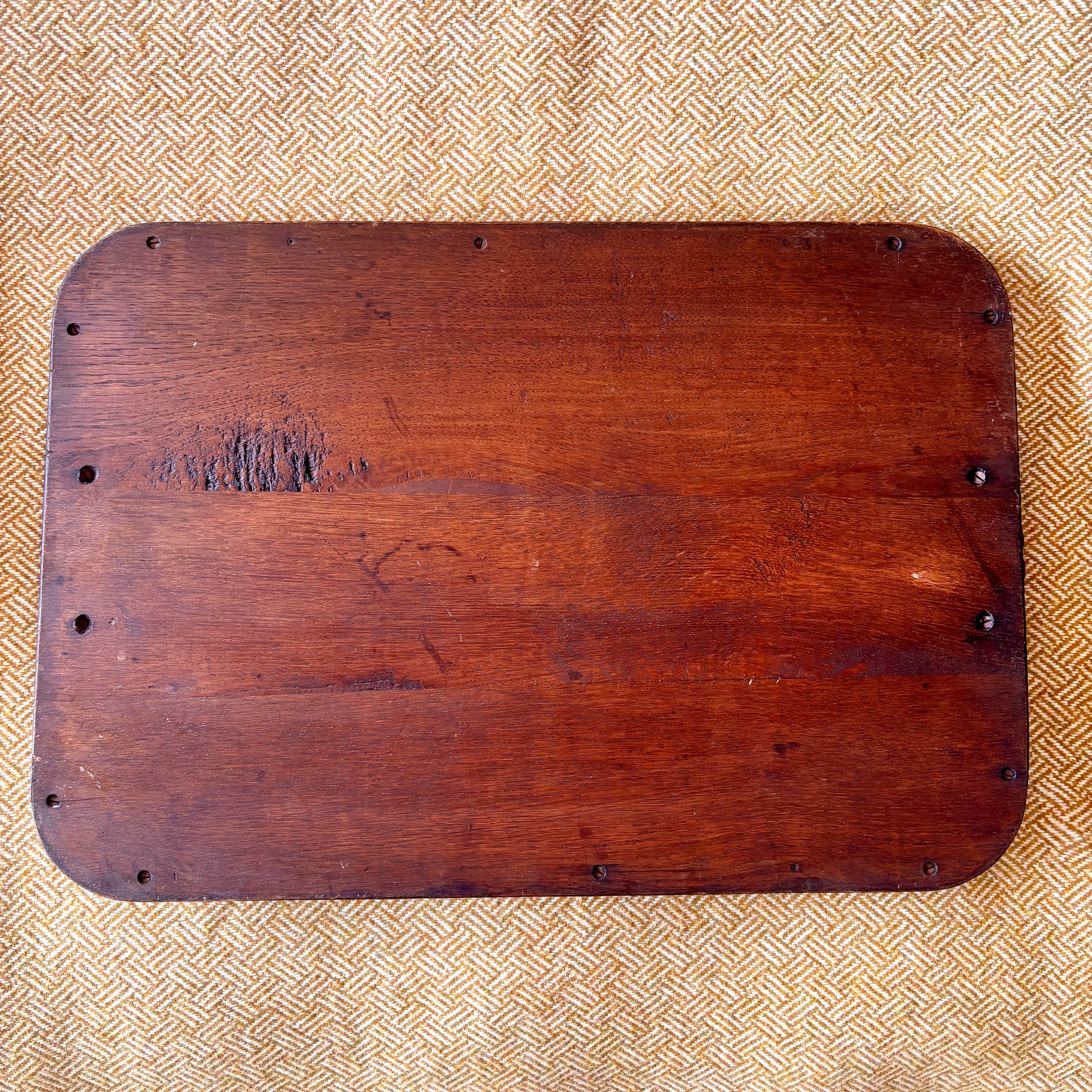 This lovely oak tray dating from approx. 1930s. with a nice raised handles with brass caps to the wooden grips, this tray would grace any living area, bedroom, garden or footstool.