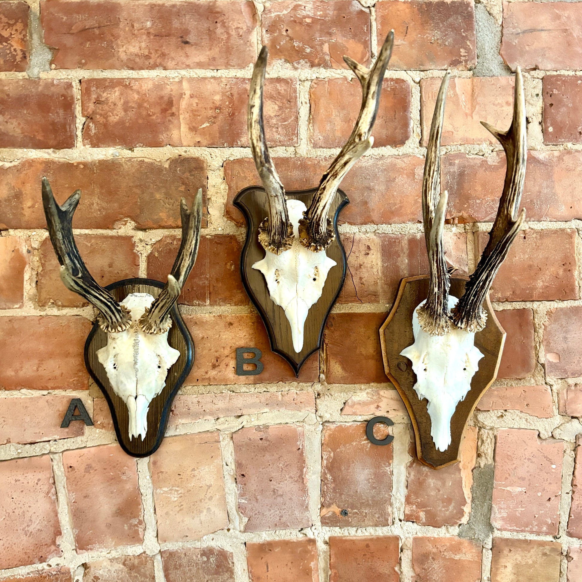 A Fantastic selection of vintage Roe deer antlers and skulls. They look great hung in many locations and even better when a few are put together.