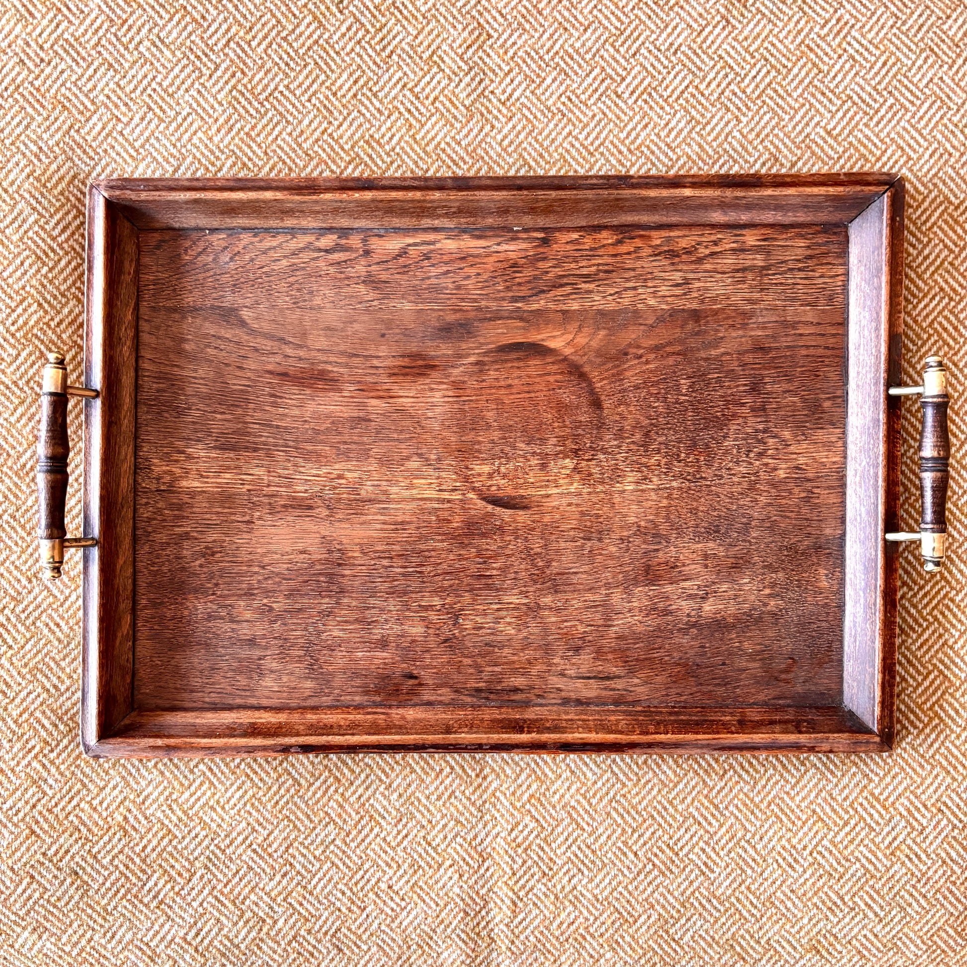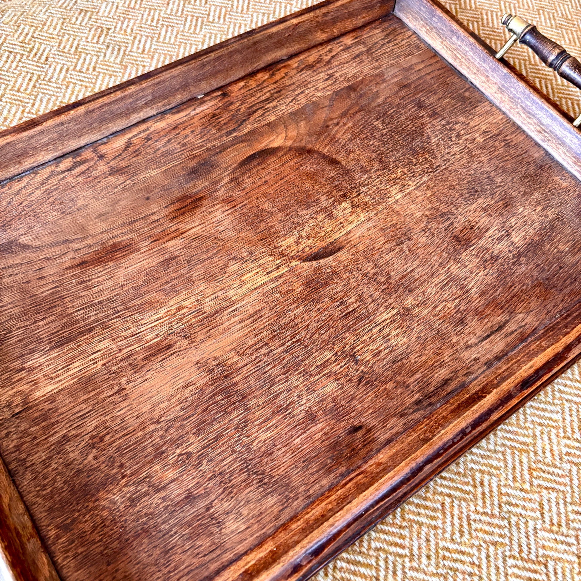 Vintage Oak Hardwood Tray with Raised Handles