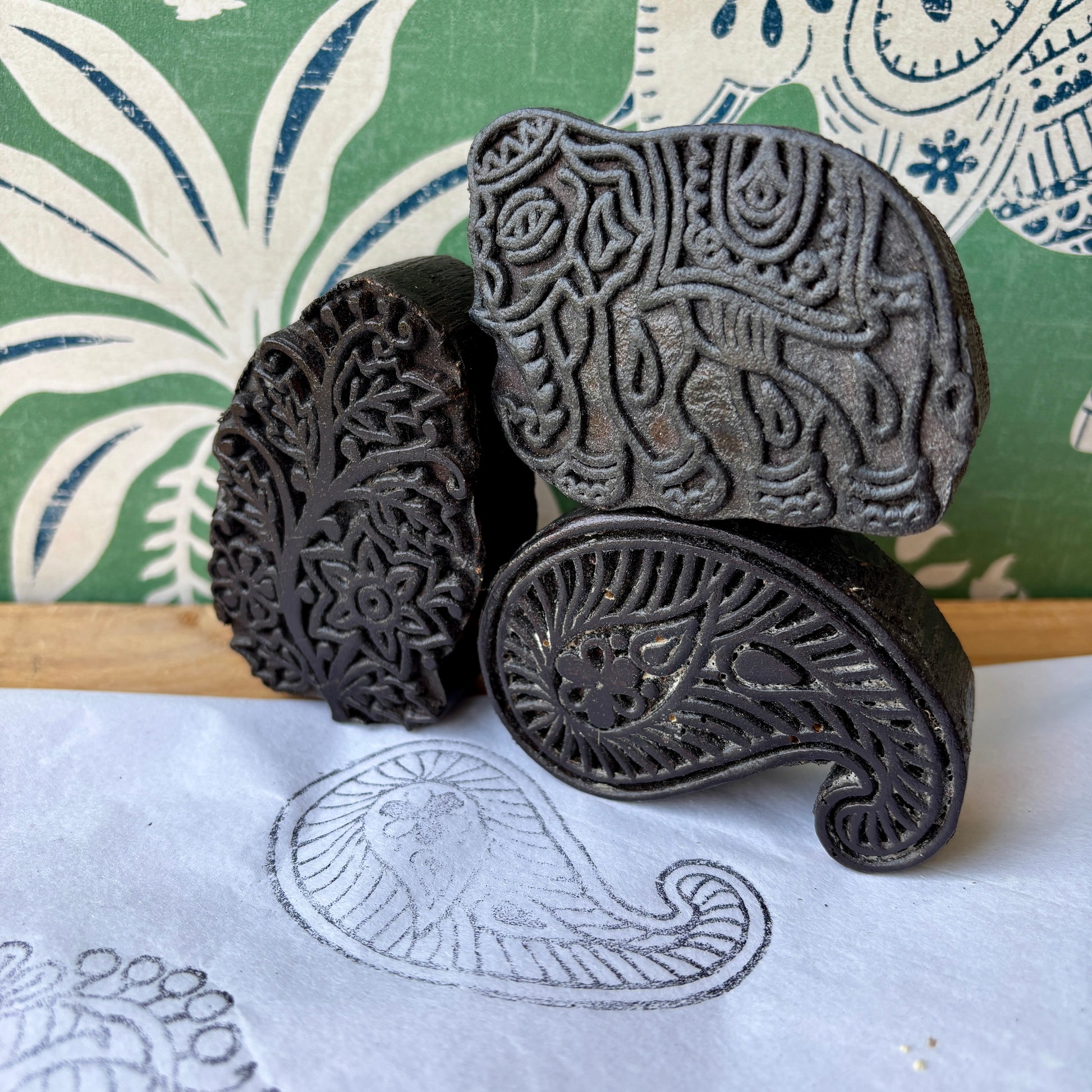 Beautiful vintage small carved wooden printing blocks. These can be used to print fabric, paper, walls - or displayed as part of a collection. They add a bit of interest to a shelf or make fantastic gifts. Each sold separately.